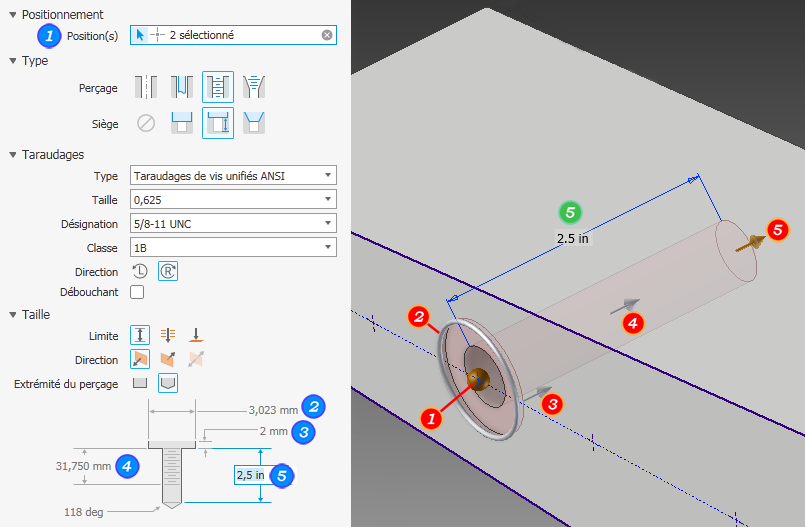 L'exemple ci-dessous se base sur la fonction de perçage pour illustrer les différents points d'accès aux valeurs des paramètres.