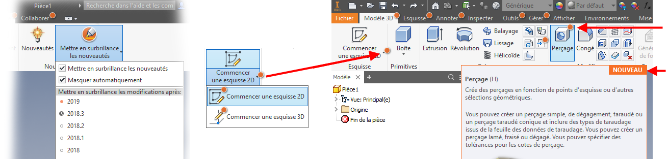 Comment utiliser cette fonction ? Imaginez que vous utilisiez une version antérieure, par exemple 2018, et que vous basculiez vers la version 2019. Vous souhaitez savoir ce qui a été ajouté et mis à jour depuis la version 2018. Vous sélectionnez 2018 : un badge est associé à toutes les commandes nouvelles ou mises à jour après la version 2018. Sinon, sélectionnez la version 2018.2 : des badges sont associés aux commandes mises à jour ou nouvelles dans les versions 2018.3, 2019 et 2019.1.
