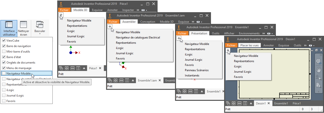 Vous pouvez également modifier la visibilité du navigateur Modèle via l'onglet Afficher