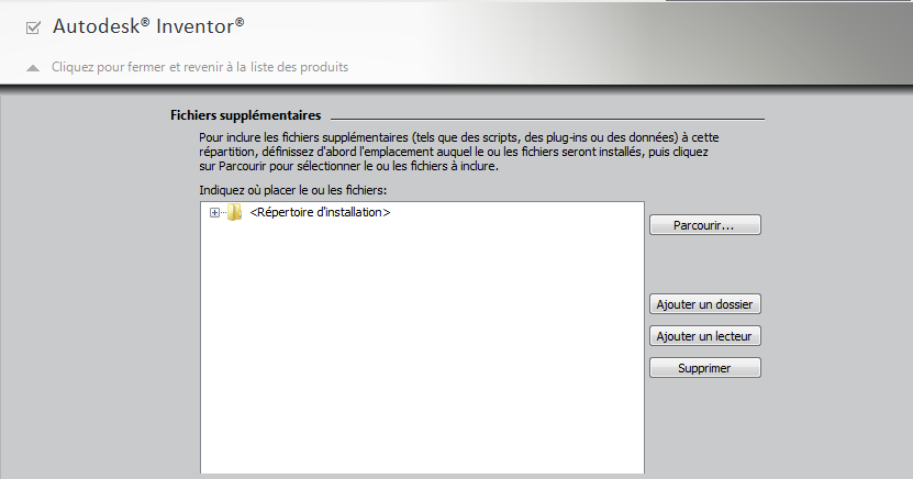 Vous pouvez installer les options de configuration iLogic dans le cadre d'une répartition d'Inventor :