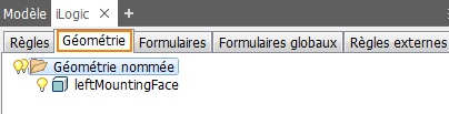 Remarque : Si aucun nom n'a été attribué à la géométrie dans le fichier pièce, l'éditeur de règles crée un nom générique pour la géométrie.