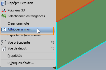- Dans un fichier pièce, cliquez avec le bouton droit de la souris sur la géométrie qui est ou qui sera contrainte à une autre pièce, puis choisissez Attribuer un nom.