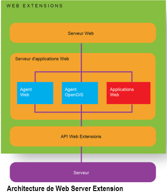 Les programmes Autodesk Infrastructure Web Server Extension sont des composants internes accessibles via l'interface API de Web Server Extension. (Il existe également une interface basée sur des formulaires à laquelle vous pouvez accéder : http://nom du serveur:port/mapserver2012/mapagent/index.html.) Les composants Web Server Extensions mettent à disposition les services offerts par Infrastructure Map Server aux applications clientes sur Internet ou un réseau intranet à l'aide du protocole HTTP.