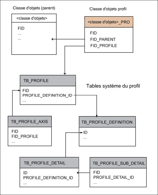 Les tables système du profil stockent la configuration des profils dans le modèle métier, comme indiqué dans la table suivante : Vous devez utiliser le concepteur de profils pour modifier la configuration.