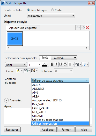 Accédez au bas de la liste Contenu du texte pour voir l'option Utiliser l'expression.