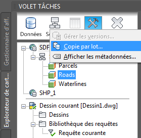 - Vous pouvez copier les données au format SDF depuis d'autres formats géospatiaux, et de SDF vers ces formats, à l'aide de la fonction Copie par lot.