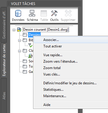 Associez des dessins à partir de l'onglet Explorateur de cartes du volet Tâches.