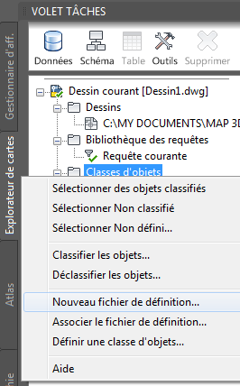 Vous allez utiliser l'onglet Explorateur de cartes du volet Tâches pour créer le fichier de définition de classe d'objets . Vous pouvez créer ce fichier dans n'importe quelle carte.