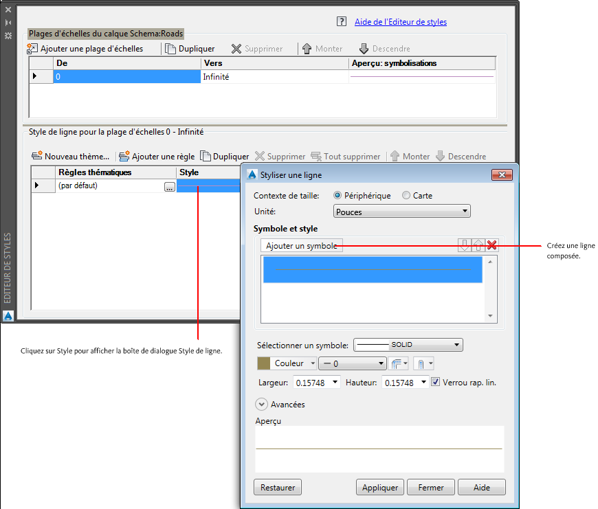 Définissez une autre plage d'échelles et spécifiez un style de ligne pleine.