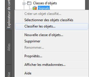 Cliquez avec le bouton droit de la souris sur la classe d'objets Signals dans l'explorateur de cartes du volet Tâches, puis choisissez Classifier les objets.