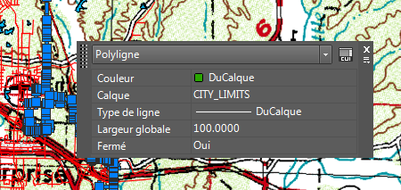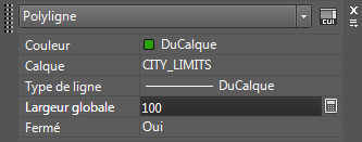 Cet exercice consiste à modifier la largeur de la polyligne représentant les limites de la ville. Les limites de la ville seront alors plus visibles dans le dessin. Vous allez ensuite délimiter l'image pour n'afficher que la partie rectangulaire qui entoure la ville.
