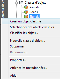 Cliquez avec le bouton droit de la souris sur la classe d'objets appropriée pour créer un objet dans cette classe.
