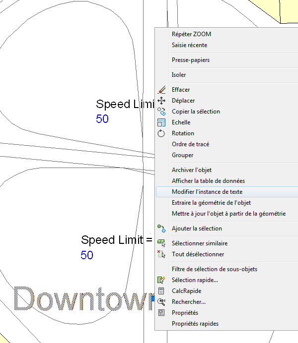 Chaque annotation correspond à une "instance de texte". Il est possible d'ajouter plusieurs instances à un calque de texte. Lorsque vous associez un calque de texte, toutes les instances de texte sont insérées sur la carte.