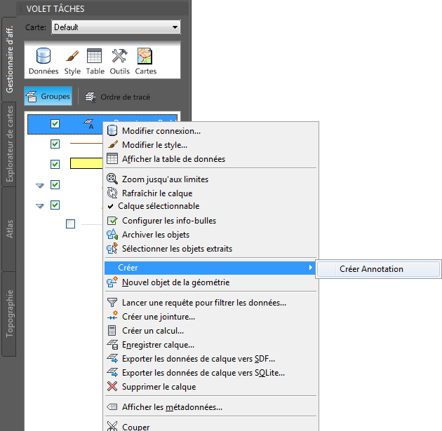 Etant donné que le calque de texte est une banque de données, archivez les modifications que vous avez apportées afin qu'elles deviennent disponibles dans d'autres cartes.