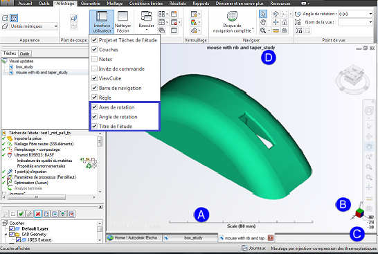 Si vous souhaitez agrandir l'espace du panneau Modèle afin de voir le détail du modèle plus clairement, vous pouvez activer ou désactiver les différents éléments de l'interface utilisateur à partir de l'onglet Affichage. Cliquez sur