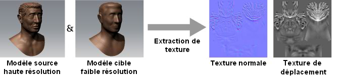 Pour les textures normales et de déplacement, deux méthodes d'extraction sont disponibles :