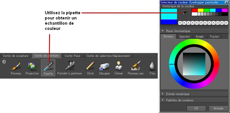 - Dans la barre d'outils Outils de peinture, sélectionnez Pipette