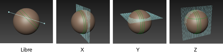 Pour ajouter des courbes perpendiculaires à un axe local ou global spécifique, définissez l'option Plan sur l'axe souhaité.