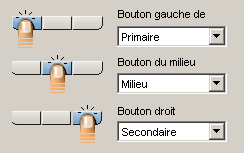 - Dans la boîte de dialogue Propriétés de Souris, cliquez sur l'onglet Boutons et définissez les boutons gauche, central et droit comme boutons principal central et secondaire.