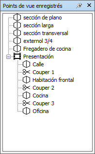 La fenêtre Points de vue enregistrés est une fenêtre ancrable qui permet de créer et gérer différentes vues du modèle et accéder ainsi directement aux points de vue prédéfinis sans recommencer toute la procédure de navigation.