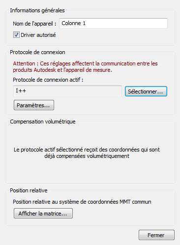 - Dans la boite de dialogue Configuration de Autodesk CMMDriver, cliquez sur Fermer.