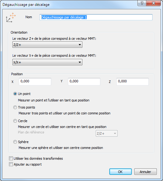 Remarque : Les dégauchissages par décalage sont uniquement disponibles lors de la création d'inspections pour des machines CNC et manuelles.