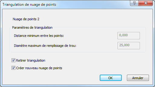 - Si la triangulation a été appliquée au nuage de points et que vous voulez inverser l'état d'origine non triangulé, cocher la case Retirer triangulation.