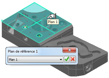 Quand vous construisez des éléments, vous devez référencer d'autres éléments dans la gamme. Vous pouvez sélectionner un élément en cliquant dessus dans la vue CAO. Ceci est utile quand vous pouvez voir l'élément, mais que vous n'êtes pas sur de son nom.