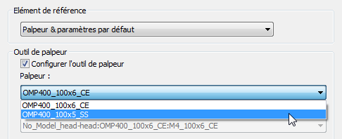 PowerInspect ajoute automatiquement un élément de palpeur et paramètres quand vous créez un document. Utilisez-le pour spécifier les réglages de palpeur et paramètres initiaux pour l'inspection.