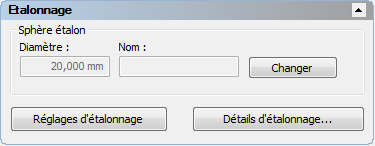 Affiche le diamètre et le nom de la sphère d'étalonnage permettant de calculer la position du palpeur et le diamètre effectif du stylet.