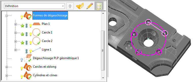 - Entités — Spécifier les couleurs des indicateurs d'informations pour les entités sélectionnées dans la vue CAO ou dans la séquence d'inspection.