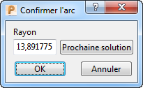 PowerMill crée un arc tangentiel aux autres trois éléments et affiche la boîte de dialogue Confirmer l'arc.