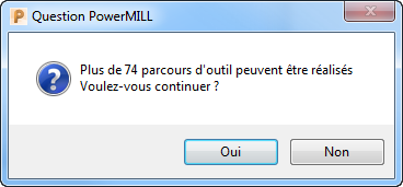 Cliquer sur Oui pour créer tous les parcours d'outils, cliquer sur Non pour abandonner l'opération.
