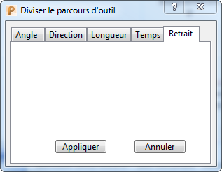 Cliquer sur Appliquer pour diviser le parcours d'outil à chaque point de retrait de l'outil. Cela vous permet de réorganiser les pièces de parcours d'outil résultantes.