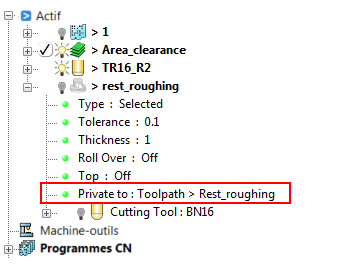 Vous pouvez également utiliser la branche Actif pour voir avec quel parcours d'outil la frontière privée active est associée.