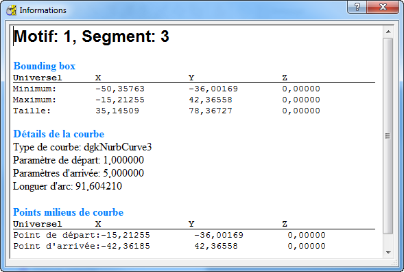 - Propriétés— Cela affiche l'étendue, le type et les points clés de la courbe de Bézier.