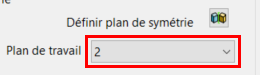 - Sélectionner un plan de travail de la liste. Cela représente le système de coordonnées le long duquel vous voulez symétriser le projet. Dans cet exemple, sélectionner 2 dans la liste Plan de travail.