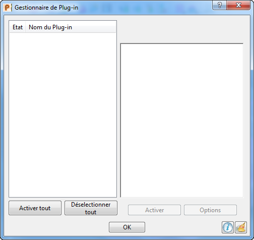 Etat — Le système de symbole indique l'état de chaque plug-in :