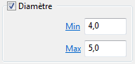 - Sélectionnez l'option Diamètre et sélectionnez une valeur Min de 4,0et une valeur Max de 5,0.