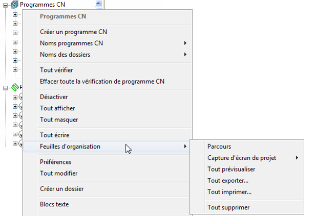 Cela crée un nombre de fichiers HTML dans le dossier de projet et ouvre l'onglet PowerMill de PowerMill, affichant ainsi les feuilles d'organisation.