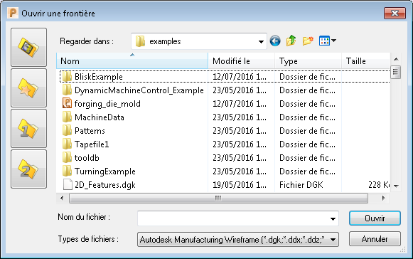Utiliser l'élément Importer pour insérer un fichier .dgk ou .pic dans la frontière active.