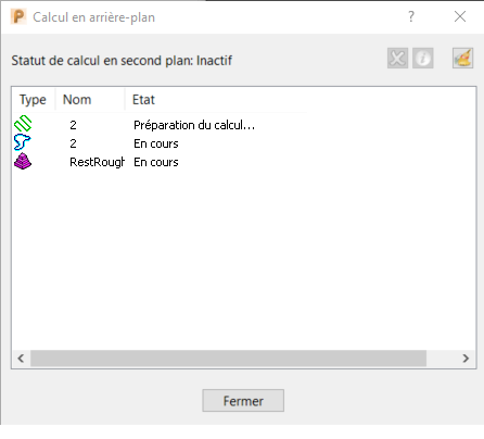 pour afficher la boîte de dialogue Calcul en arrière-plan.