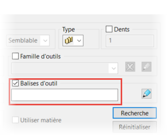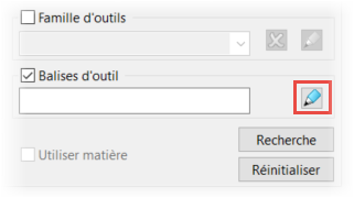 Vous pouvez rechercher des outils dans la base de données d'outils en utilisant les balises d'outils. Les outils sont ainsi plus faciles à trouver.