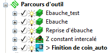 Utiliser le menu Parcours d'outils pour créer et gérer les parcours d'outils dans le projet actuel.