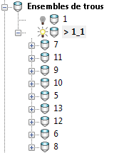Par exemple, vous devez souvent percer le même ensemble de trous avec plusieurs opérations, comme Perçage central, Perçage profond, Taraudage. Ces options vous permettent de classer les trous dans l'explorateur, en utilisant une des options, par exemple Chemin le plus court qui est relativement lent, puis créer plusieurs opérations de perçage avec un Classement de