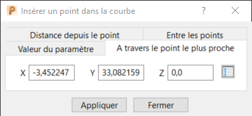 Cliquez sur l'onglet Outils de courbe > panneau Points > Insérer pour afficher la boîte de dialogue Insérer point dans courbe.