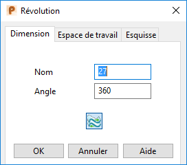 Utiliser cet onglet pour spécifier les dimensions de la révolution :