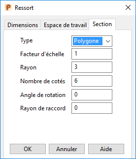 Quand vous sélectionnez un ressort de type polygone sur la page Section de la boite de dialogue Ressort, des options supplémentaires sont affichées :