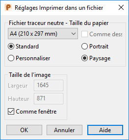 - Utilisez les options Fichier traceur neutre - Taille du papier pour définir la taille et l'orientation du papier utilisé par le fichier traceur neutre :
