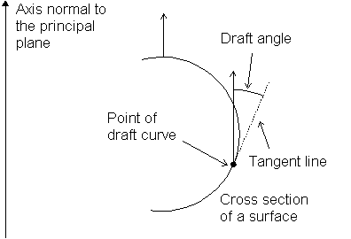 Quand une surface de dépouille est générée depuis une courbe composite, PowerShape traite la courbe composite comme courbe de dépouille. Dans ce cas, vous pouvez faire varier les angles de dépouille le long de la surface de dépouille.